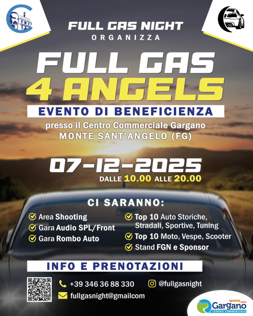Domenica 7 dicembre 2025, dalle 10:00 alle 20:00, arriva FULL GAS 4 ANGELS, l’appuntamento motoristico di beneficenza organizzato da Full Gas Night.